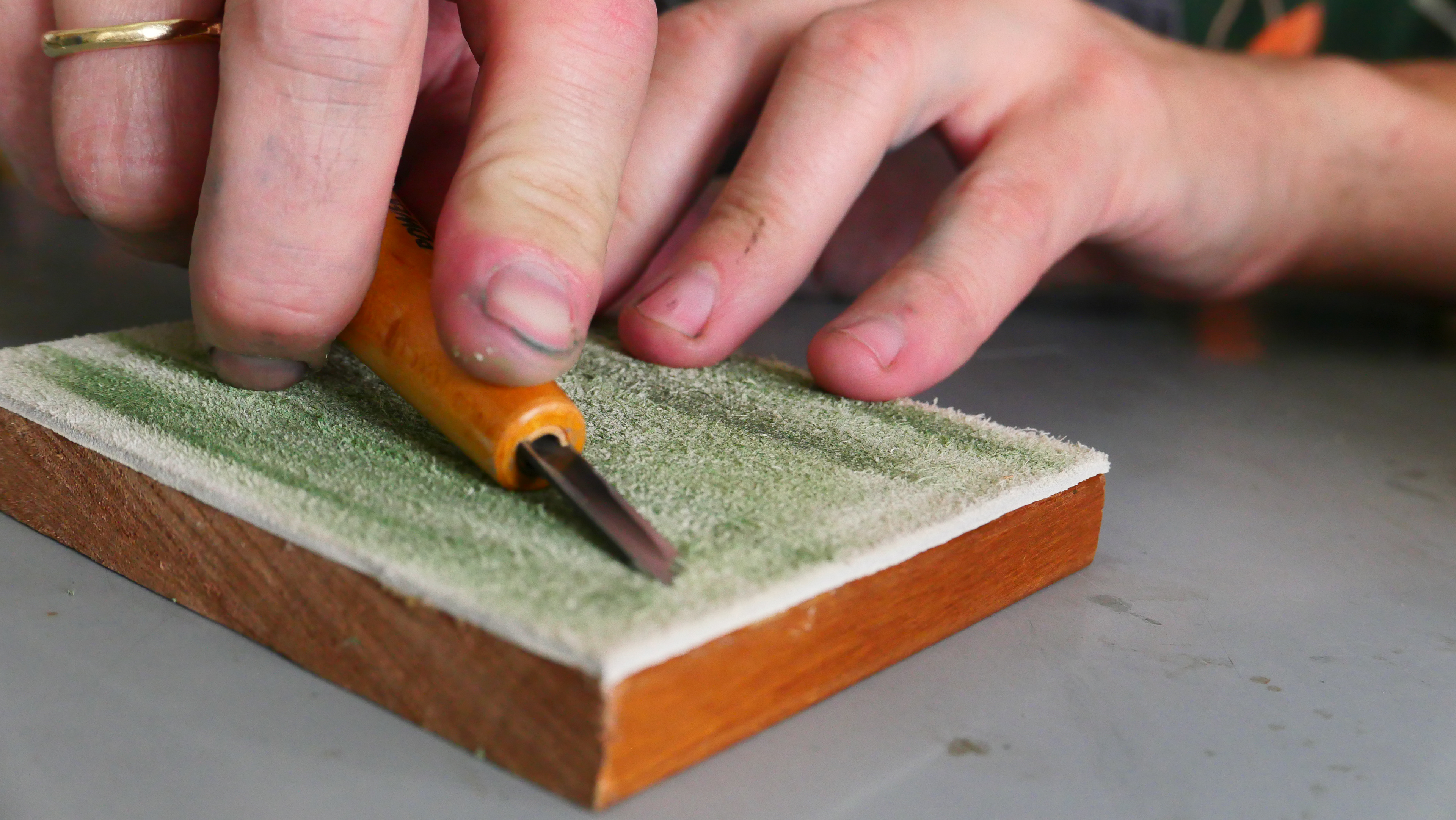 משטח עור לתחזוקה שוטפת של כלי הגילוף והחריטה מומלץ גם לרכוש משחה מיוחדת ל למירוק כלי העבודה.
