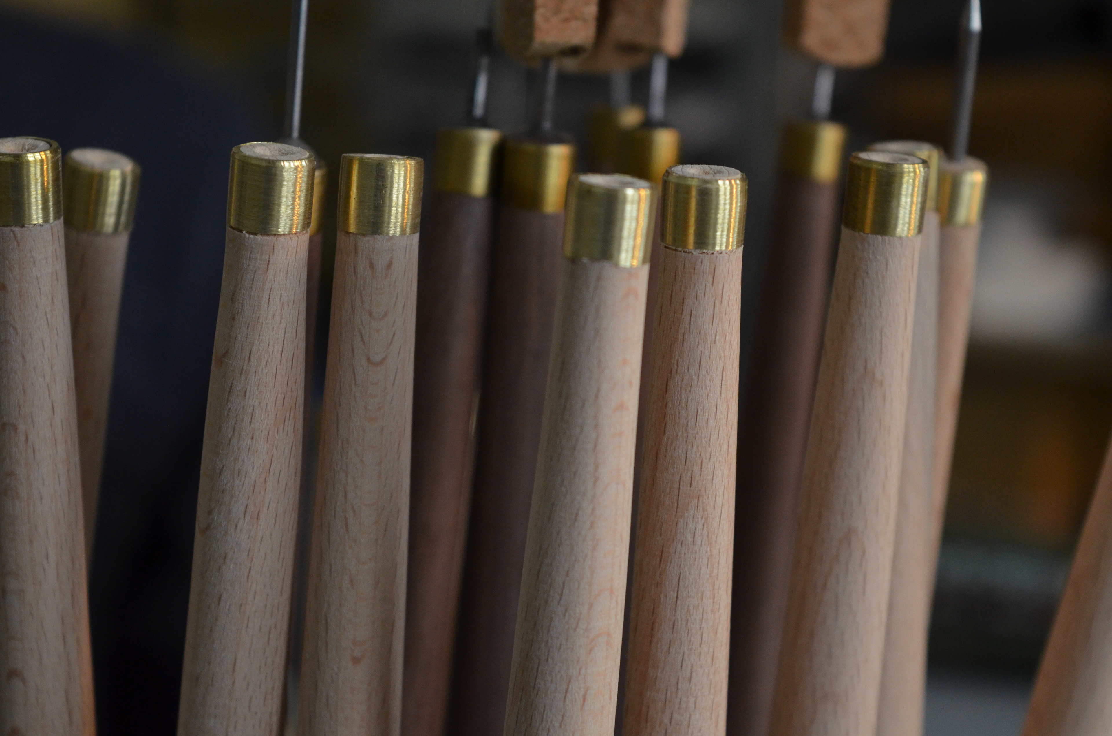 .ידית העץ מיוצרת בישראל בעבודת יד על ידי חרט עץ מהגליל